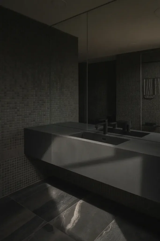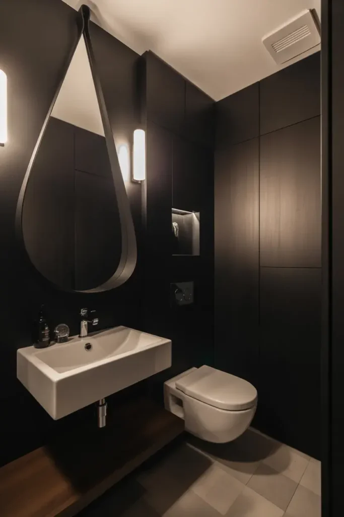 2. Moody Black Vanity With Crisp White Walls