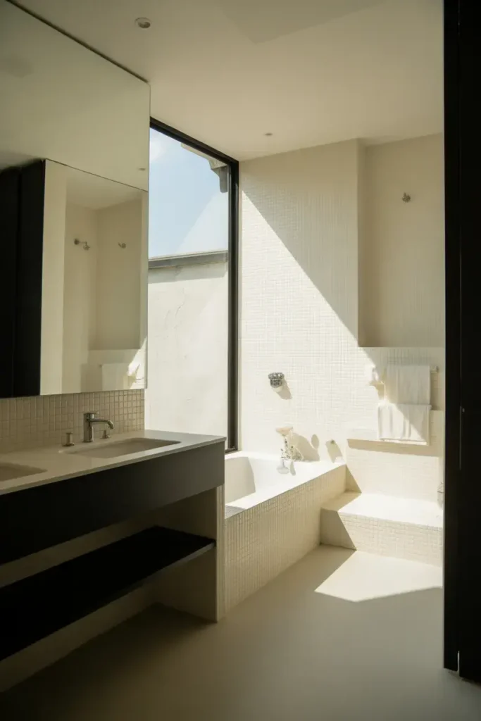 5. White Bathroom With Black Accents That Feel Effortless