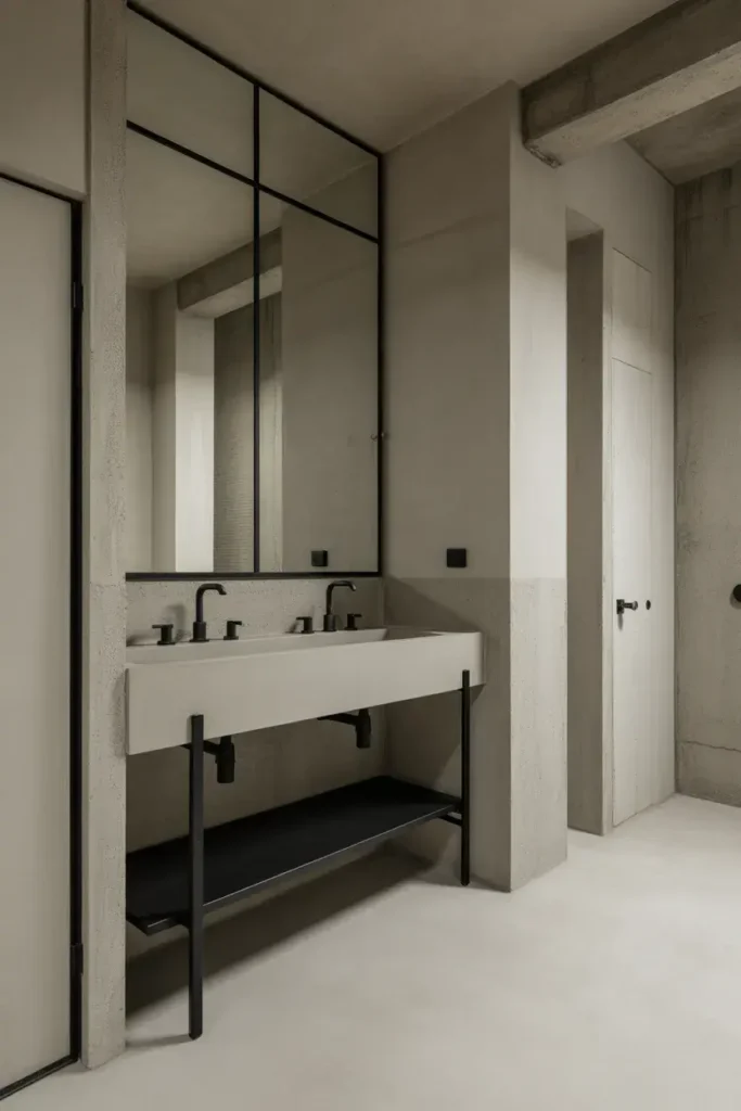 A black framed mirror is basically jewelry for your bathroom. It adds contrast, structure, and just enough drama.