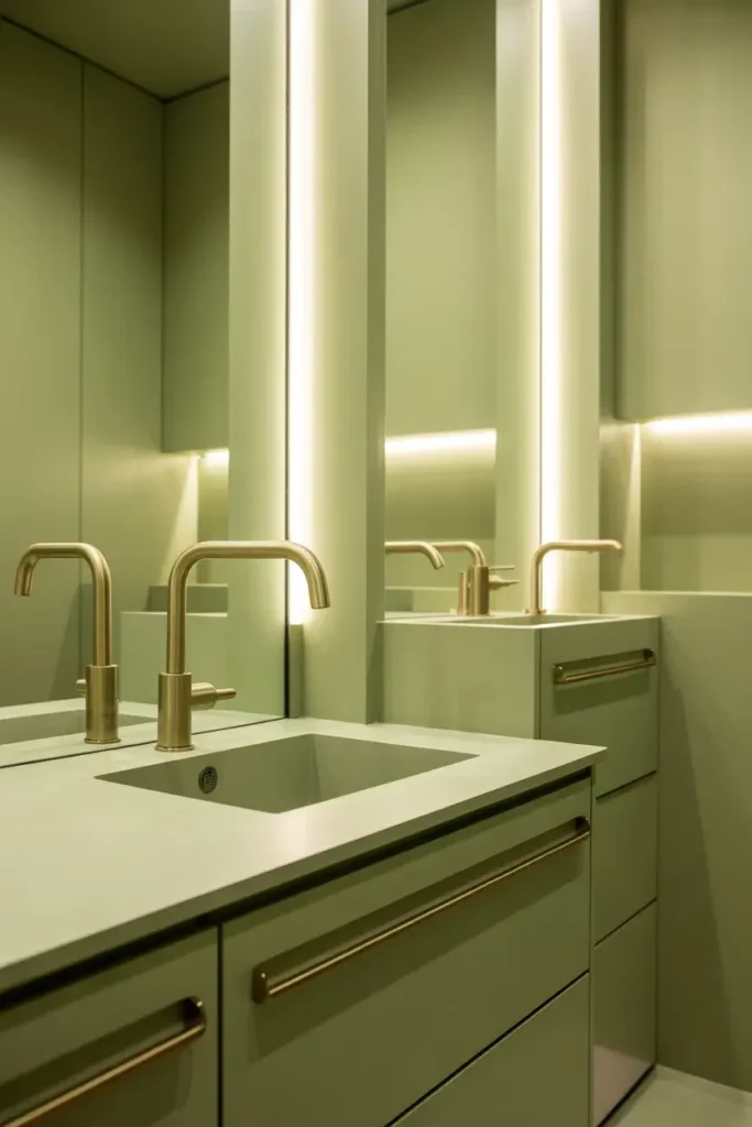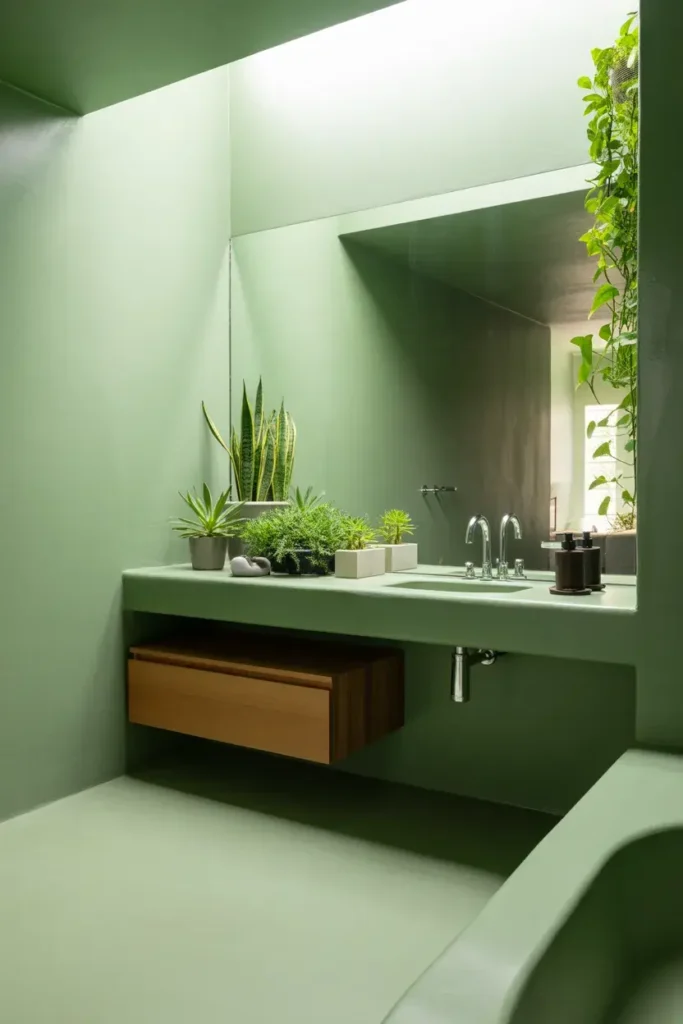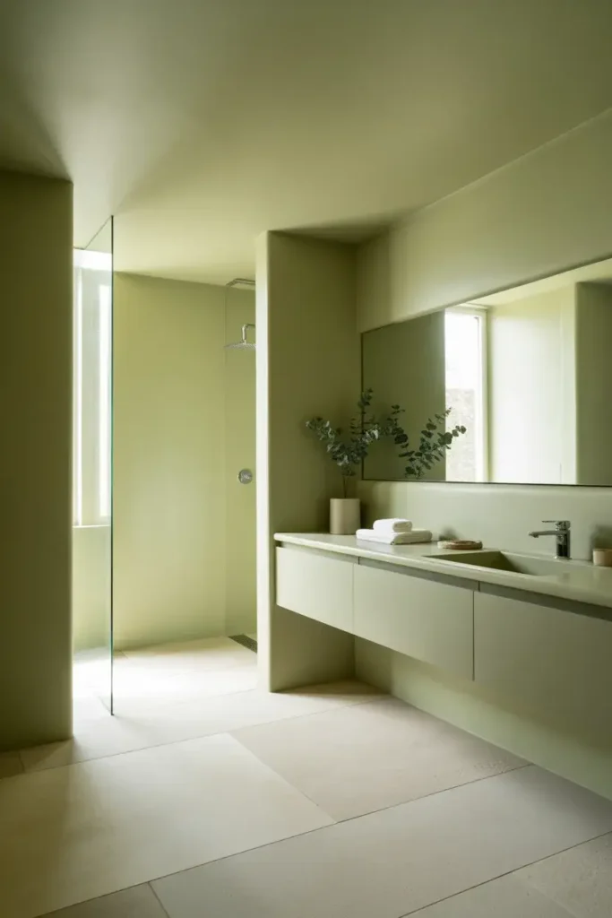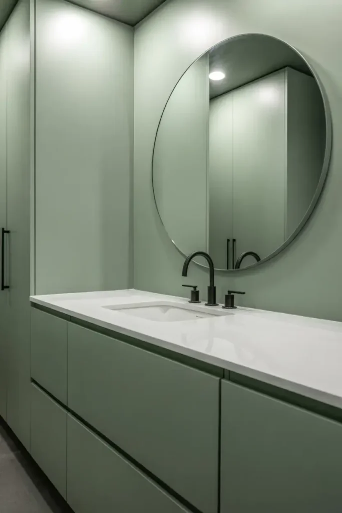 11. Minimalist Sage Green Bathroom for a Clean Look