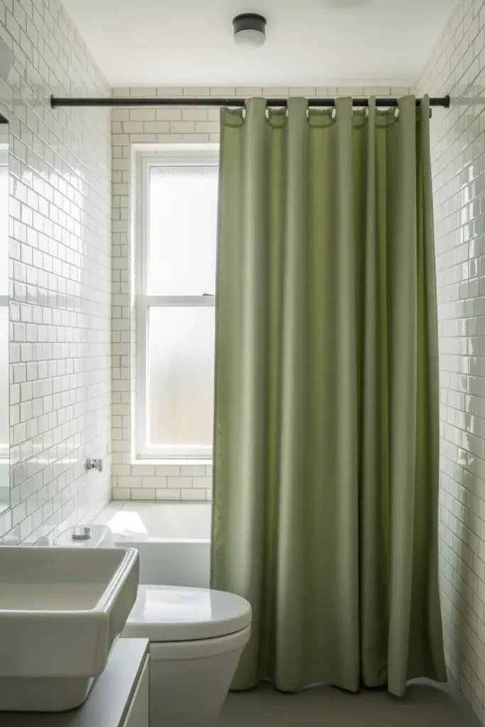 9. Sage Green Shower Curtain for Instant Impact