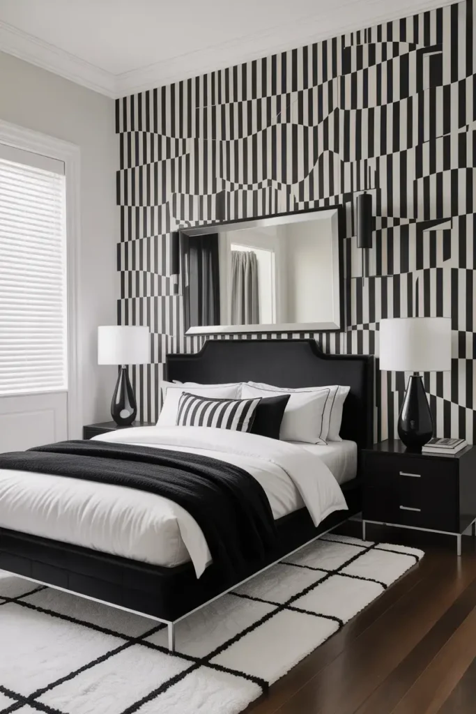 22. Monochrome Wallpaper for a Clean, Stylish Bedroom