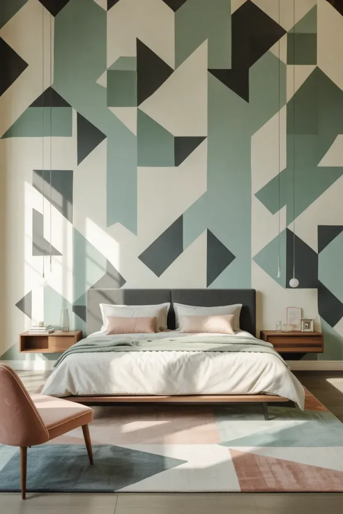 10. Geometric Wallpaper for a Modern, Stylish Bedroom