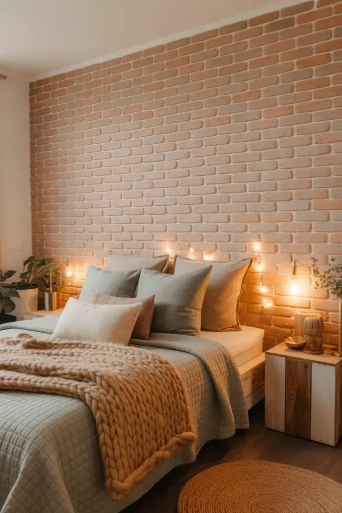Want character without construction? Faux brick or stone wallpaper adds instant texture and charm. It feels warm, slightly rustic, and surprisingly versatile.