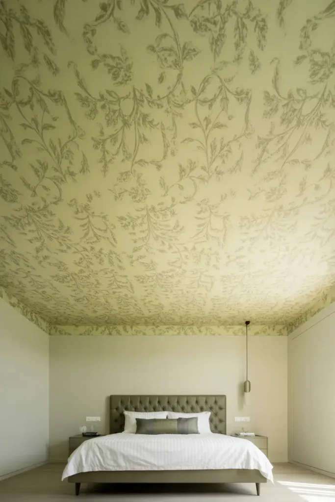 13. Wallpapered Ceiling for a Bold Design Moment