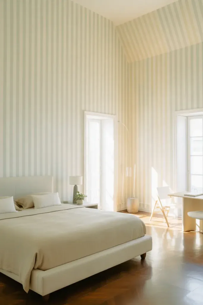 14. Stripe Wallpaper to Make Your Bedroom Look Bigger