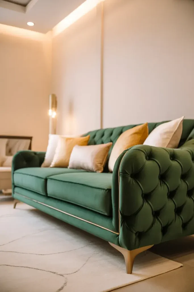 1. Emerald Green Sofa with Subtle Gold Accents