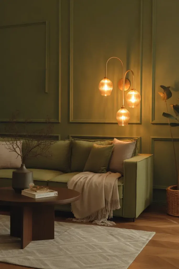 17. Moss Green with Warm Gold Lighting