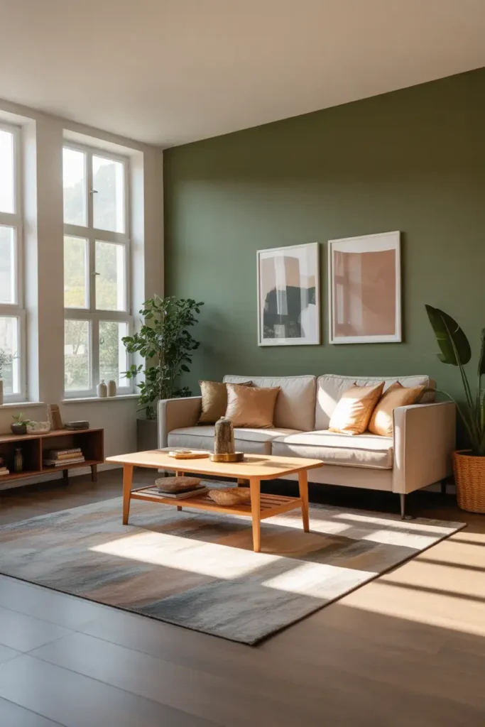 A green accent wall can instantly transform the look of your living room. It adds depth and character without requiring you to repaint the entire space.