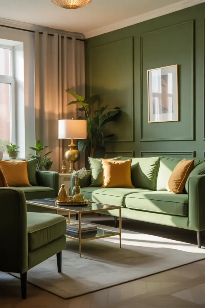 3. Green and Gold Living Room Accents