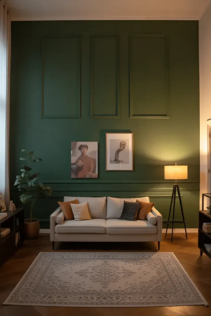 7. Dark Green Feature Wall for a Dramatic Look
