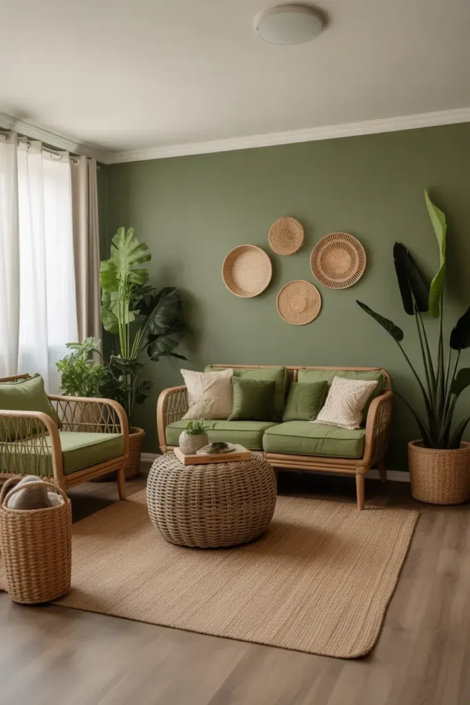 11. Green Living Room with Woven Textures