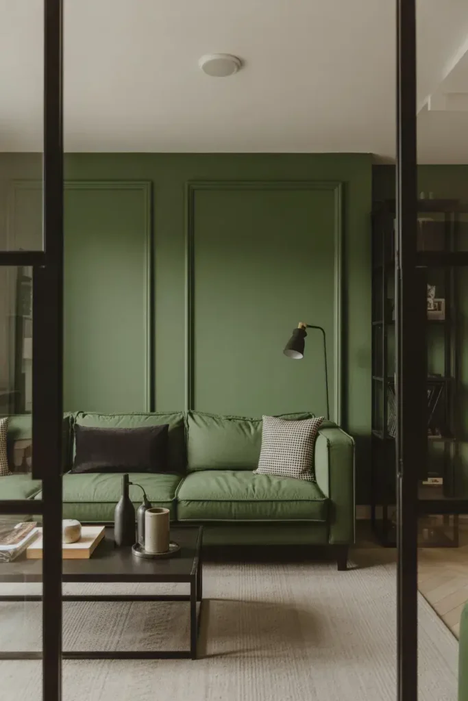 1. Green Accent Wall Behind the Sofa