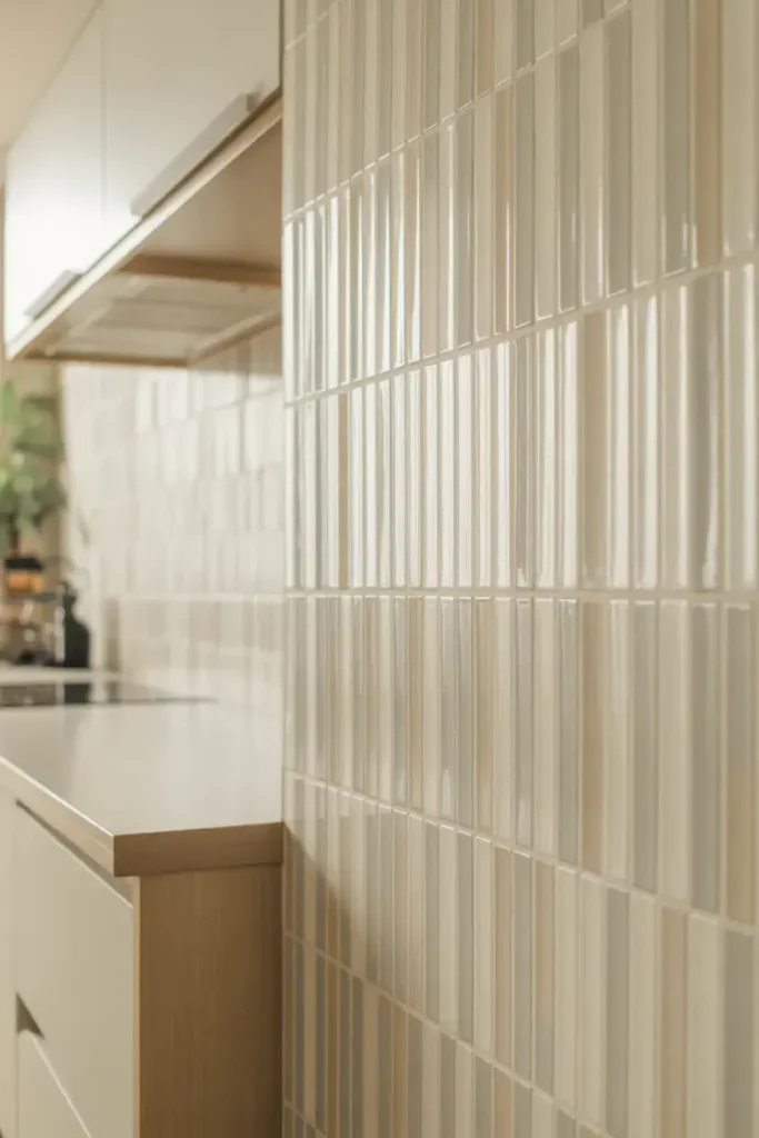 Vertical layouts are everywhere in Kitchen Backsplash Ideas 2026. They subtly stretch the wall upward, making kitchens feel taller and airier.