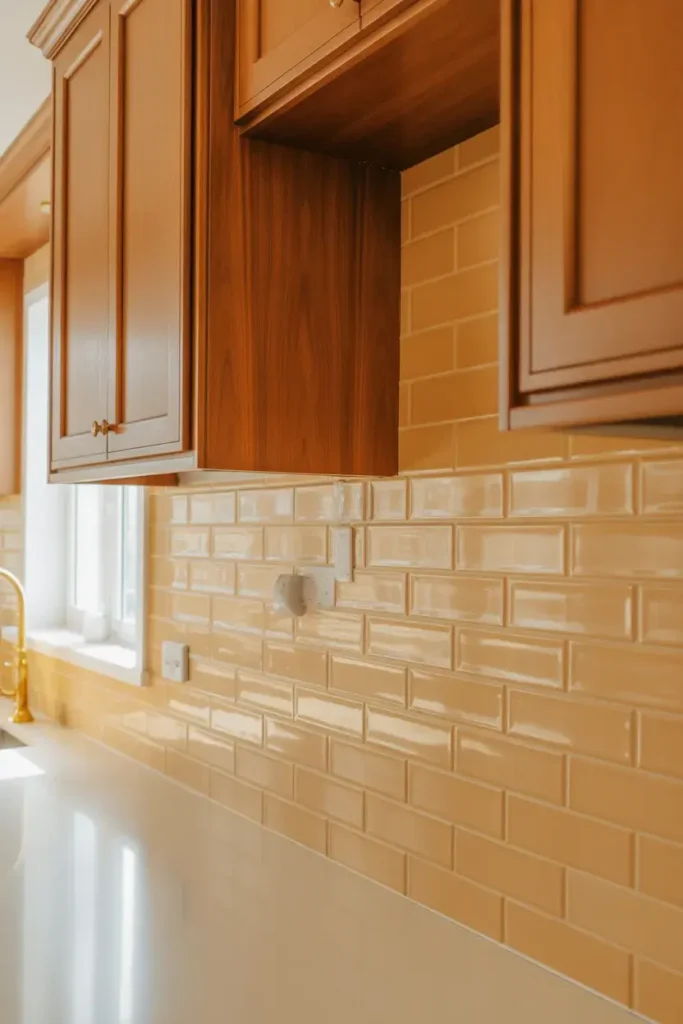 Color is back—but quietly. Earth tones are becoming a favorite choice in Kitchen Backsplash Ideas 2026.