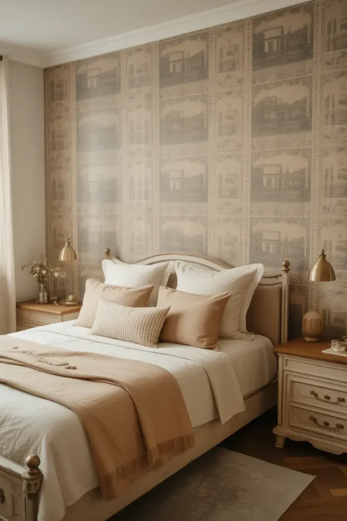 Vintage-style wallpaper adds charm and character instantly. Think delicate patterns, faded florals, or classic motifs.