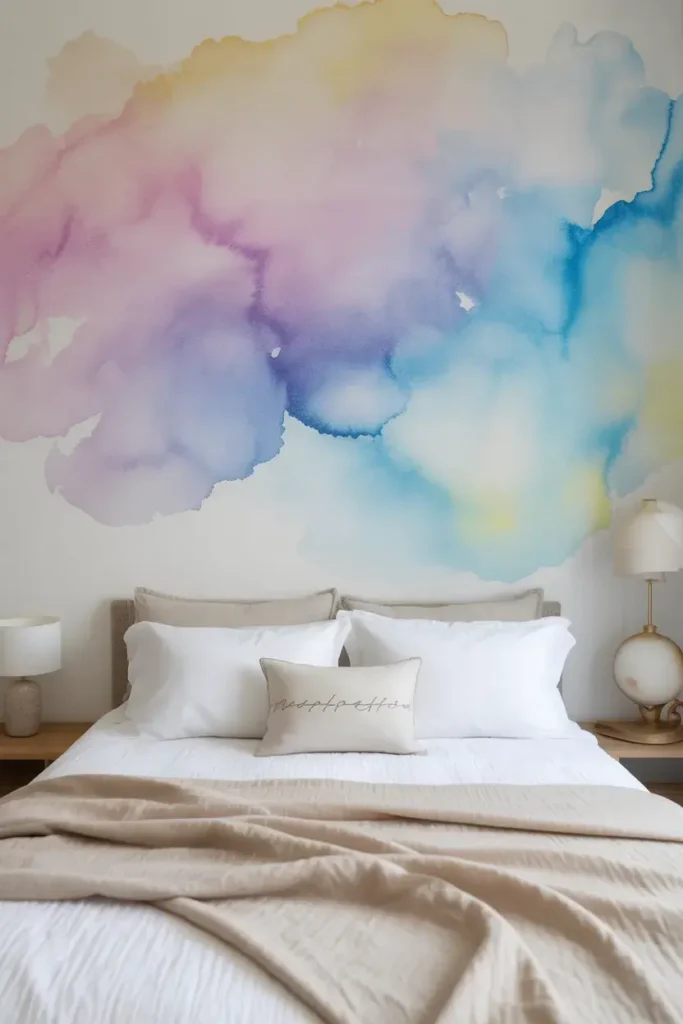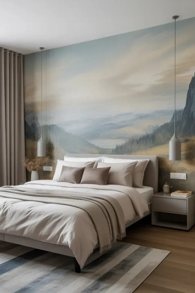 Murals or scenic wallpapers feel like art. Mountains, skies, or abstract landscapes create a dreamy backdrop.