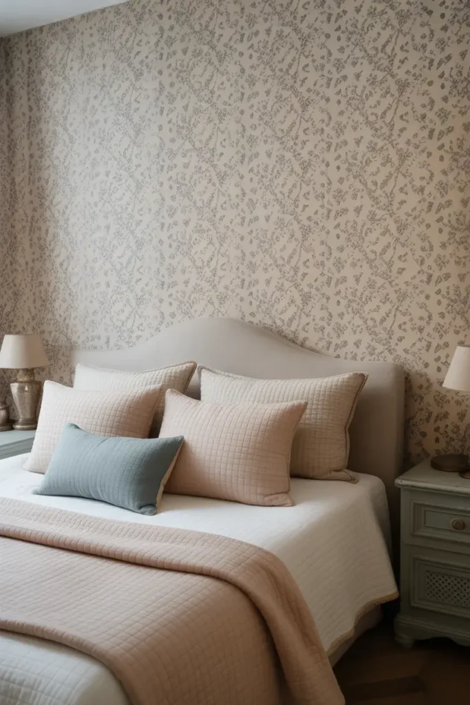 Pastels aren’t just for kids’ rooms. Soft blush, sage, or lavender wallpapers add a gentle glow to your bedroom.