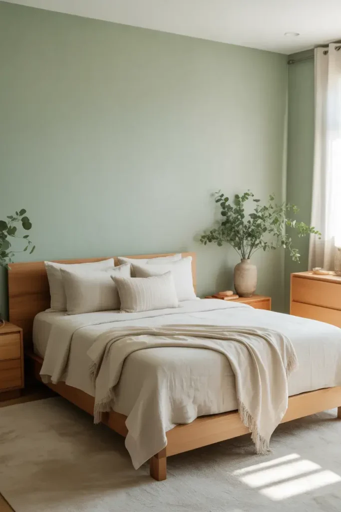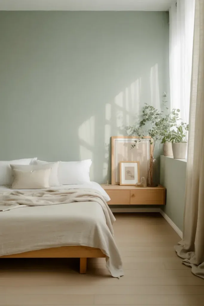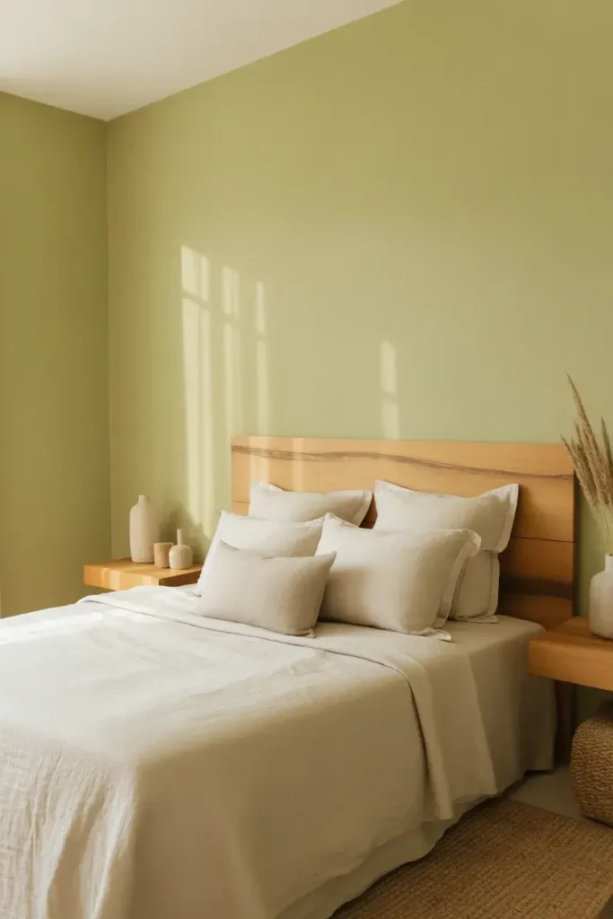 Green continues to dominate Bedroom Color Trends 2026, especially soft sage. It feels calming, natural, and timeless.