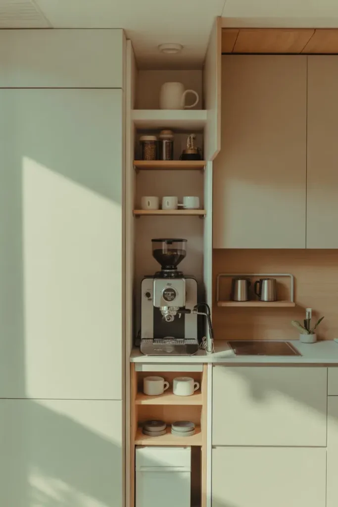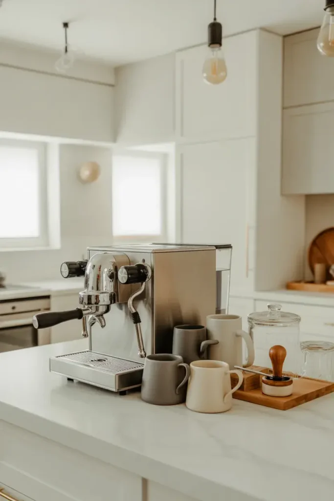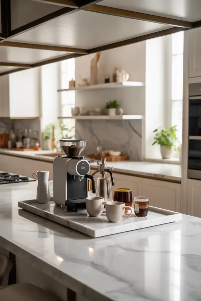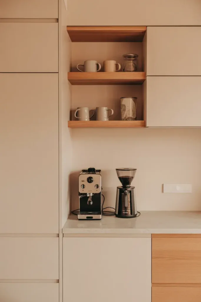 If you have the space, a built-in coffee bar looks super polished. It blends seamlessly with your kitchen design.