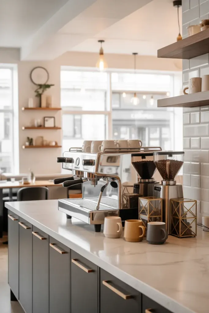 Modern coffee bars focus on clean lines and simple colors. They feel sleek and stylish.