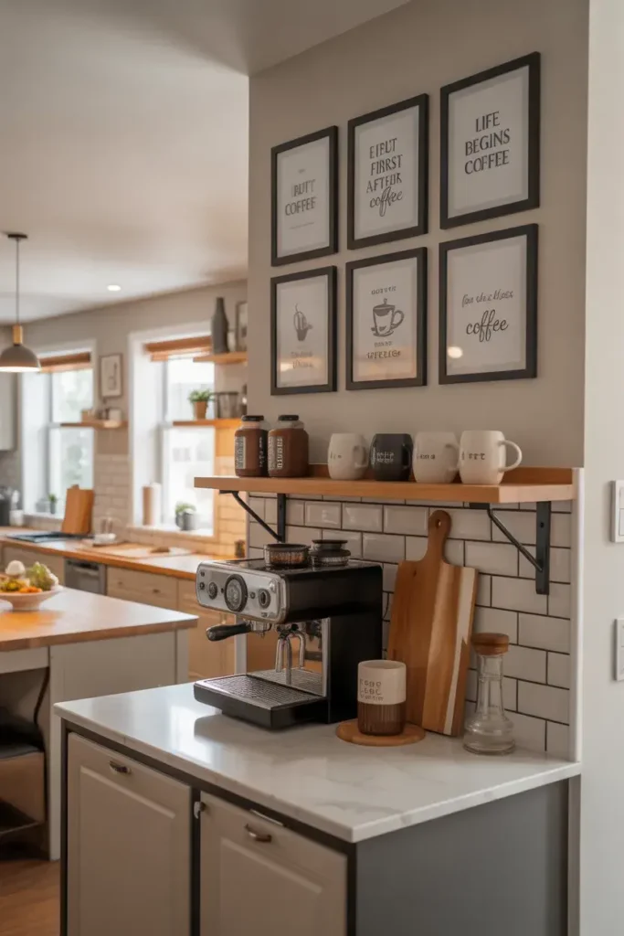 Adding artwork makes your coffee bar feel styled. It turns a simple setup into a design feature.