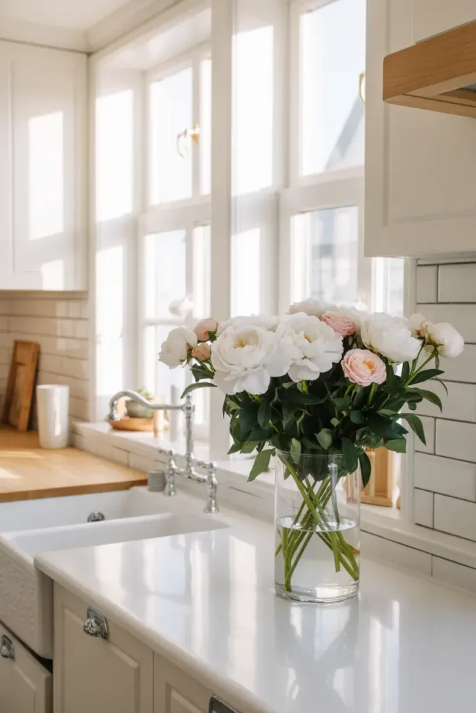 3. Fresh Flowers That Brighten the Entire Counter