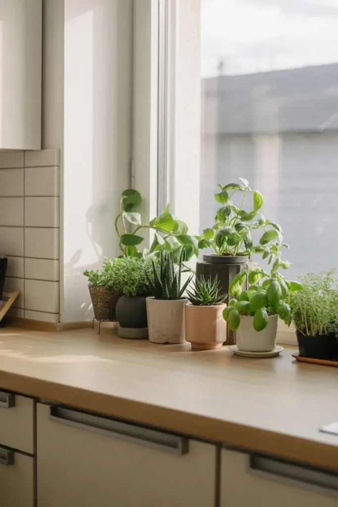Place them near the sink or in a corner where they catch natural light—it makes the space feel fresh instantly.