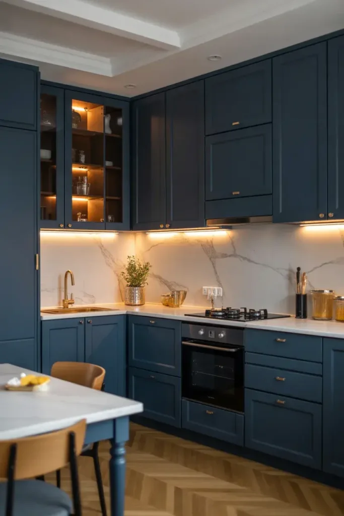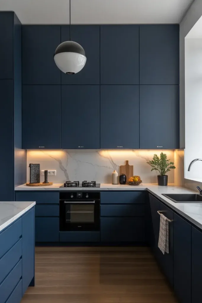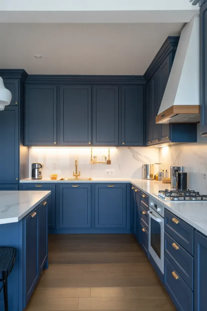 Some kitchen colors come and go with trends… but navy blue somehow keeps getting better every year. It’s bold without feeling loud, elegant without trying too hard, and it instantly makes a kitchen look more polished.
