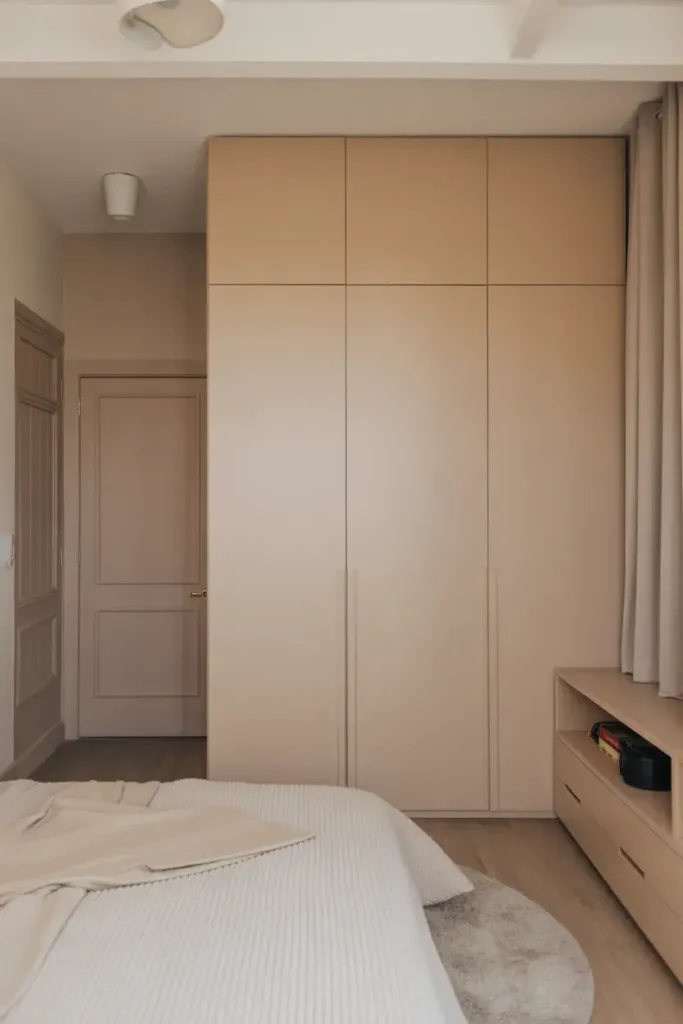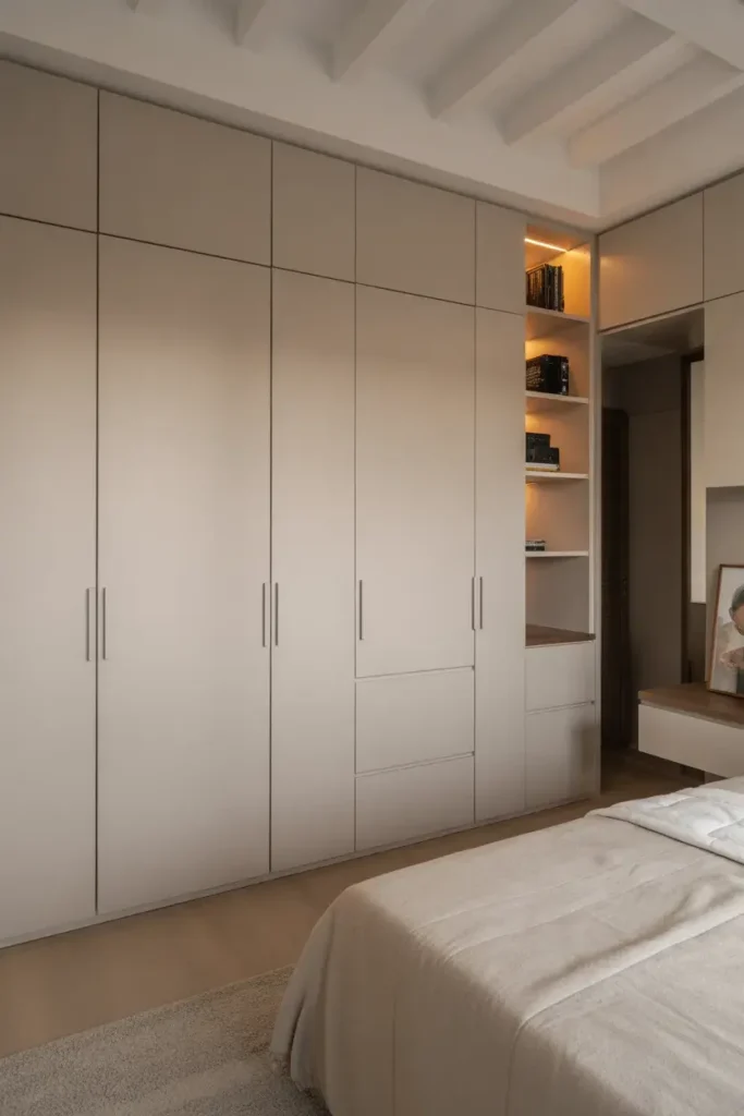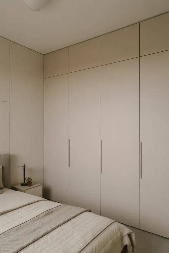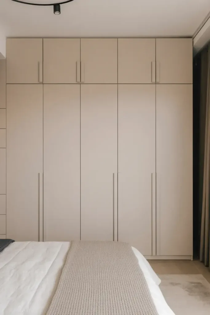 Matching wardrobe color to the wall creates a seamless look.