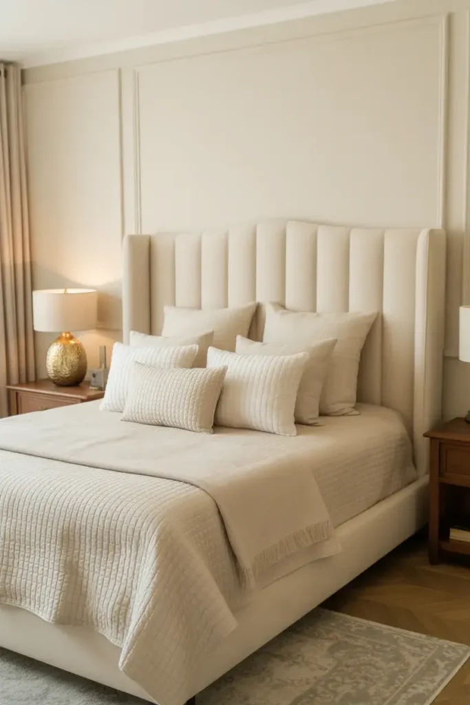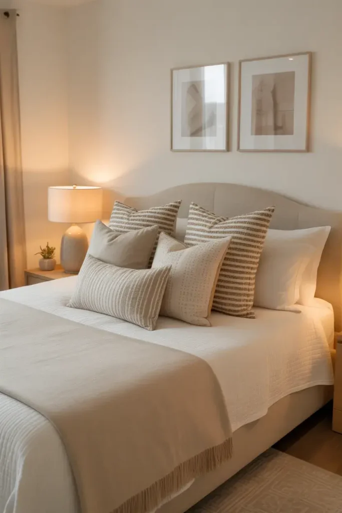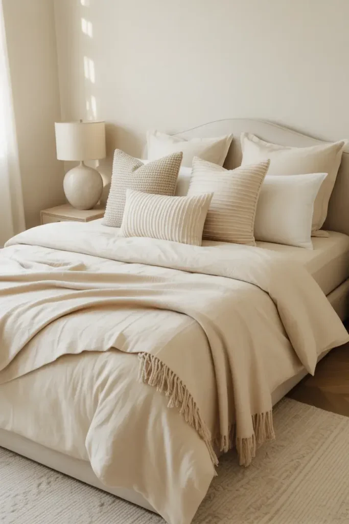 16. Cream Bedroom With Layered Pillows