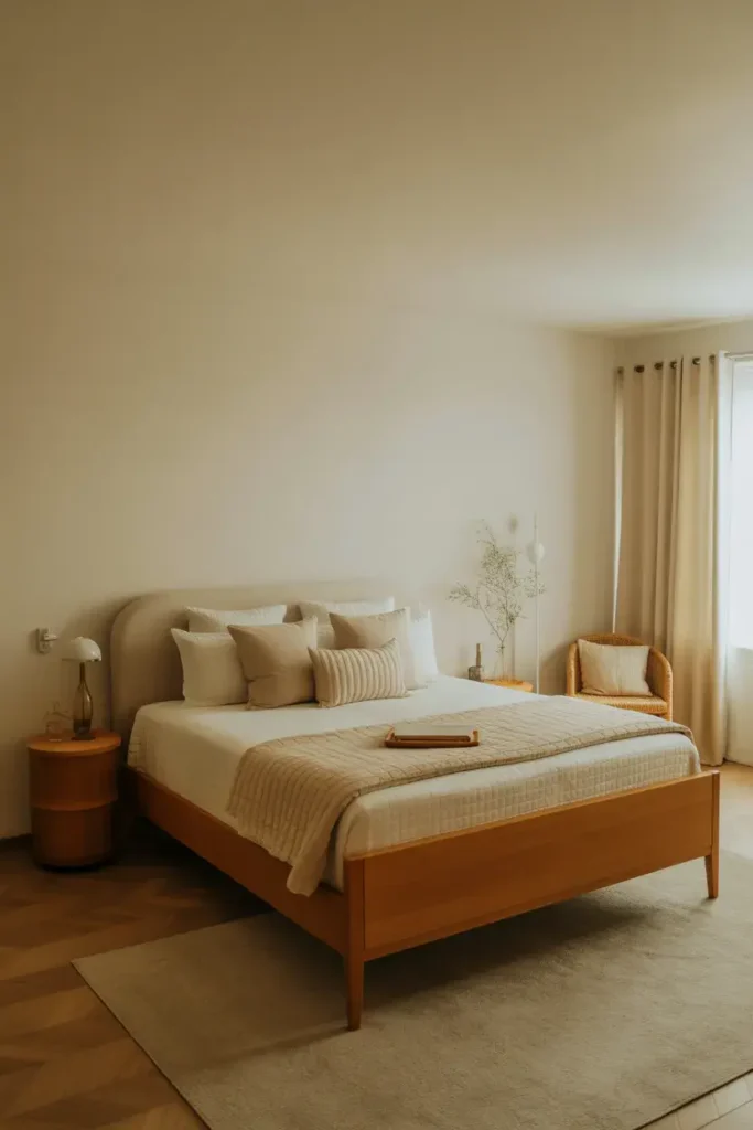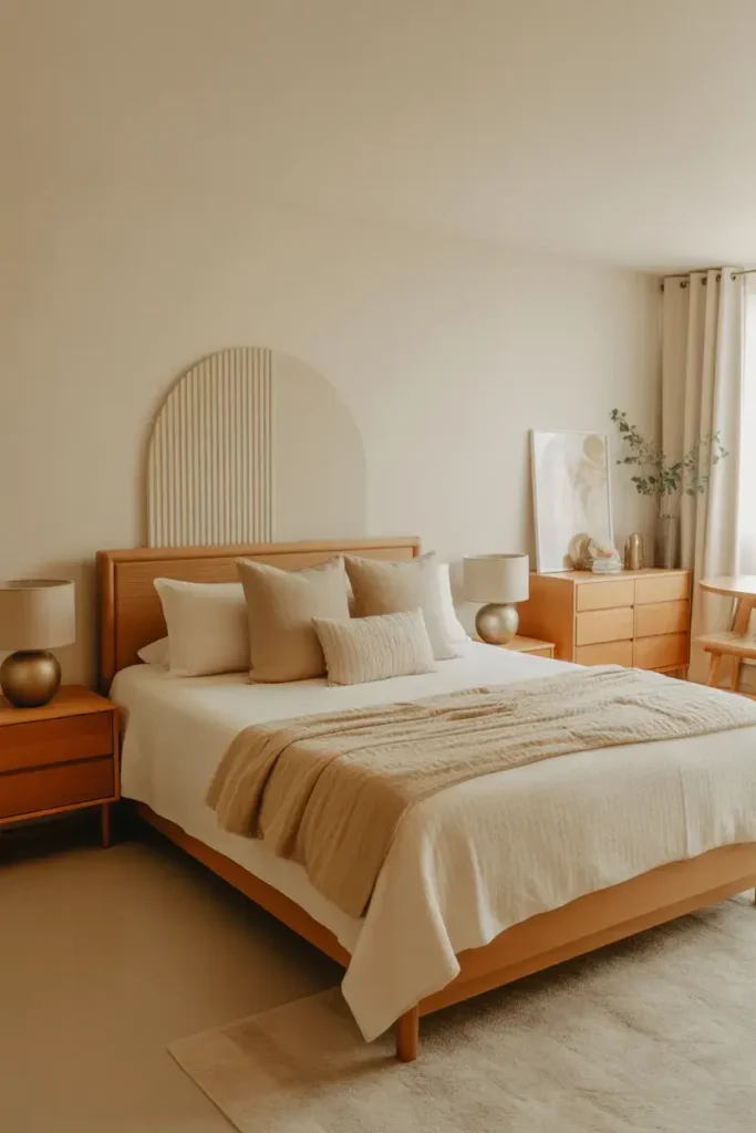 3. Cream and Wood Bedroom Combination
