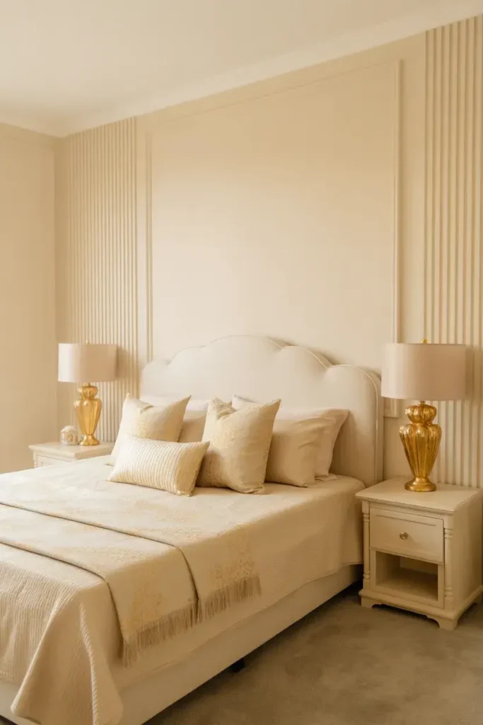 14. Cream Bedroom With Gold Accents