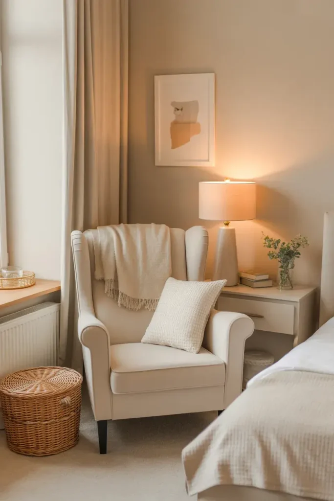 17. Cream Bedroom With Cozy Reading Corner