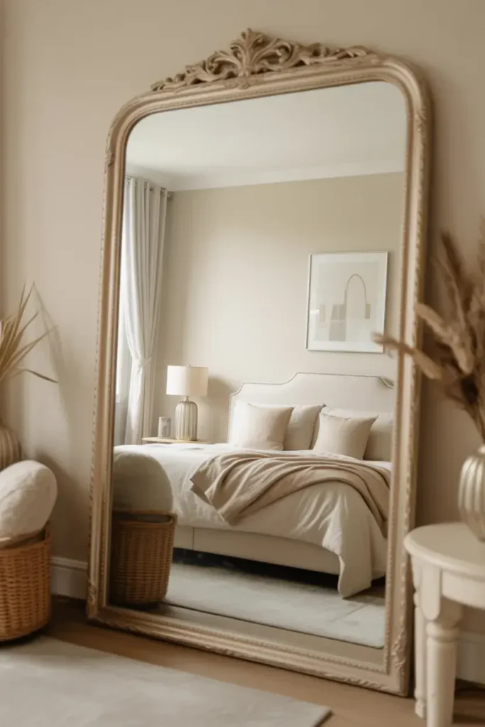 20. Cream Bedroom With Decorative Mirrors