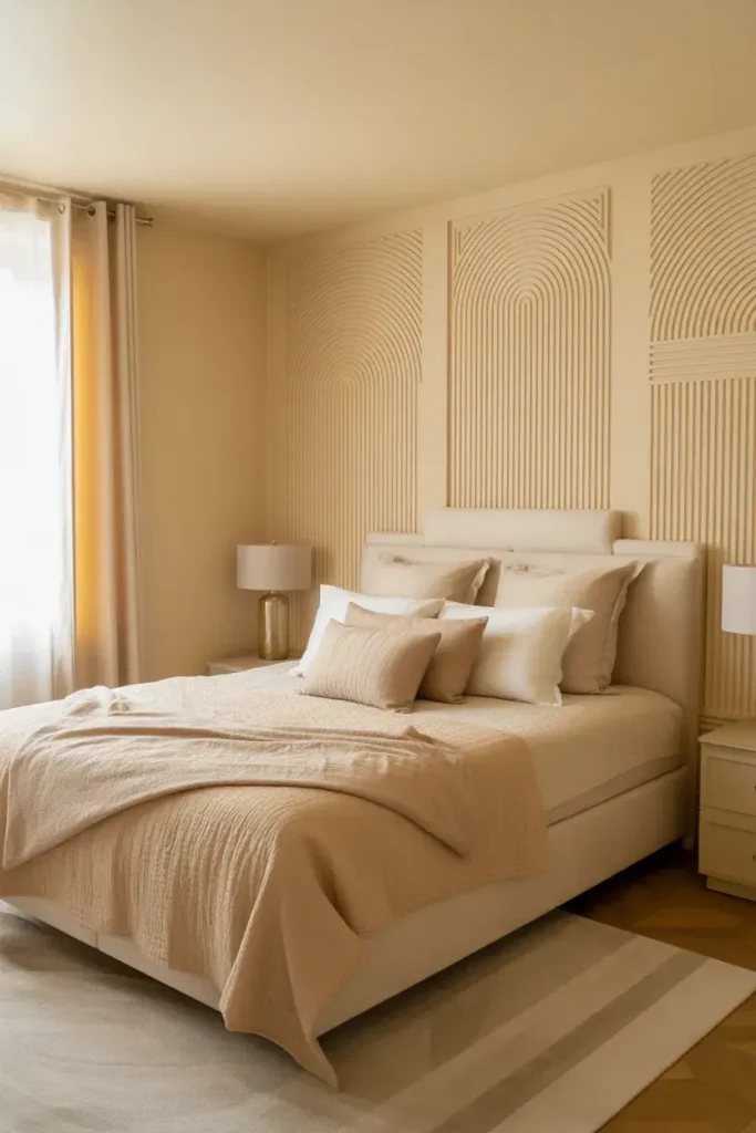 25. Cream Bedroom With Textured Walls