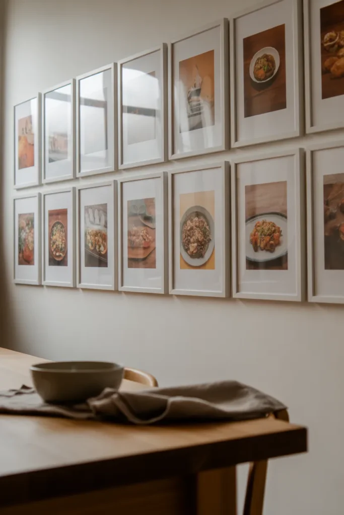 Let’s say you love a little character. Old-school baking ads, retro fruit illustrations, maybe even a quirky coffee poster. Layer them together into a slightly mismatched gallery wall.