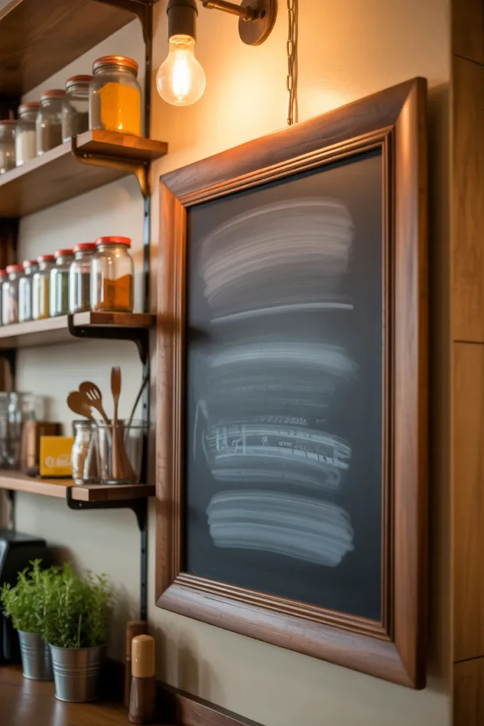 A chalkboard wall feels interactive. One week it’s a grocery list, next week it’s a cute sketch or quote.
