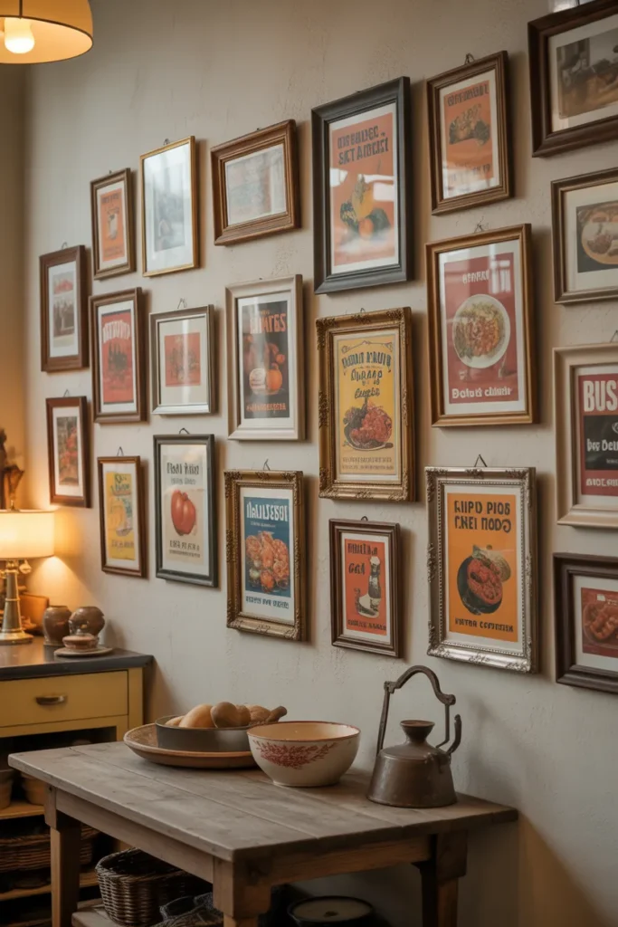 4. Vintage Kitchen Poster Gallery Wall with Personality