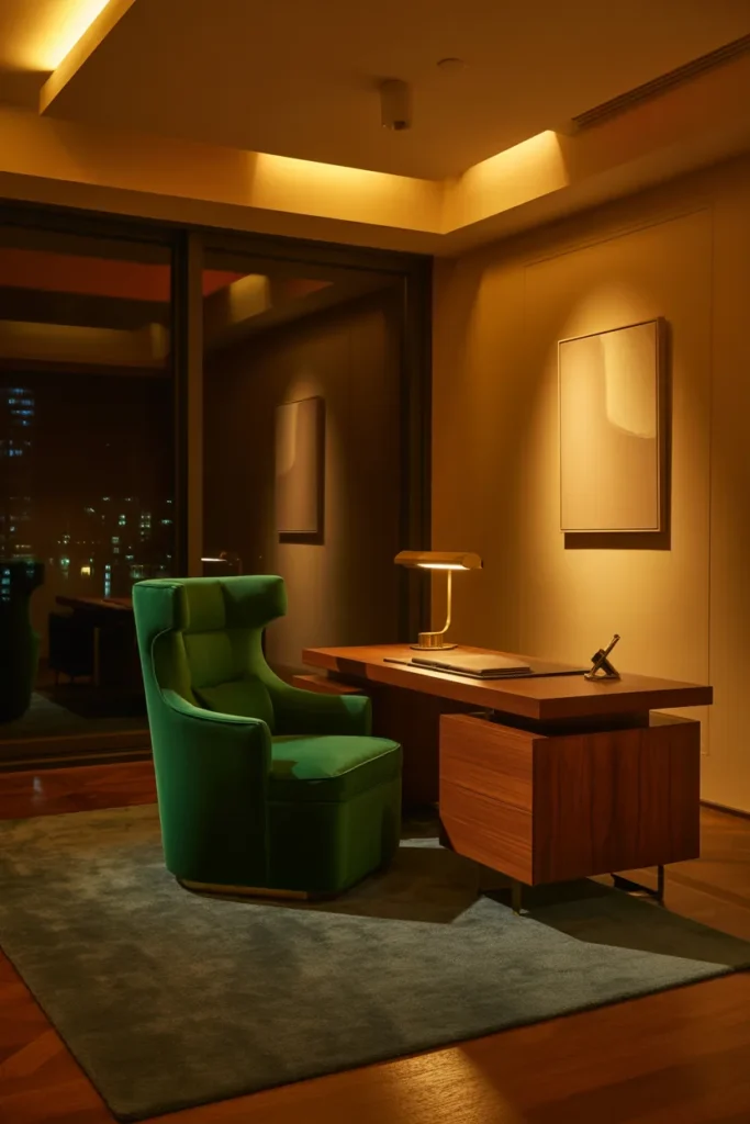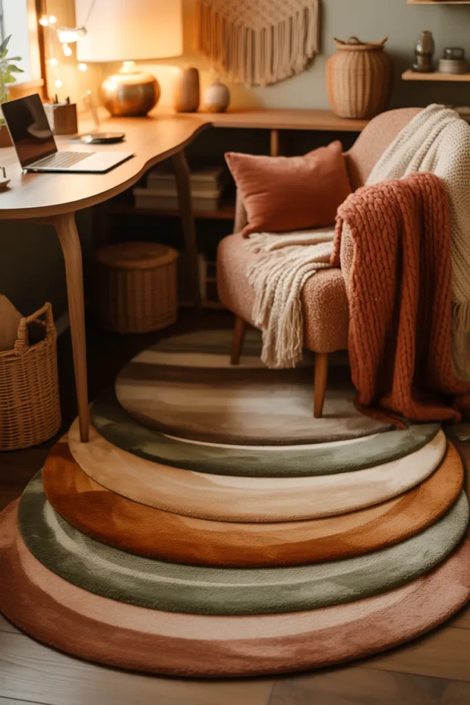 Layered rugs, soft cushions, and warm lighting can make your office feel more like a lounge than a workspace.