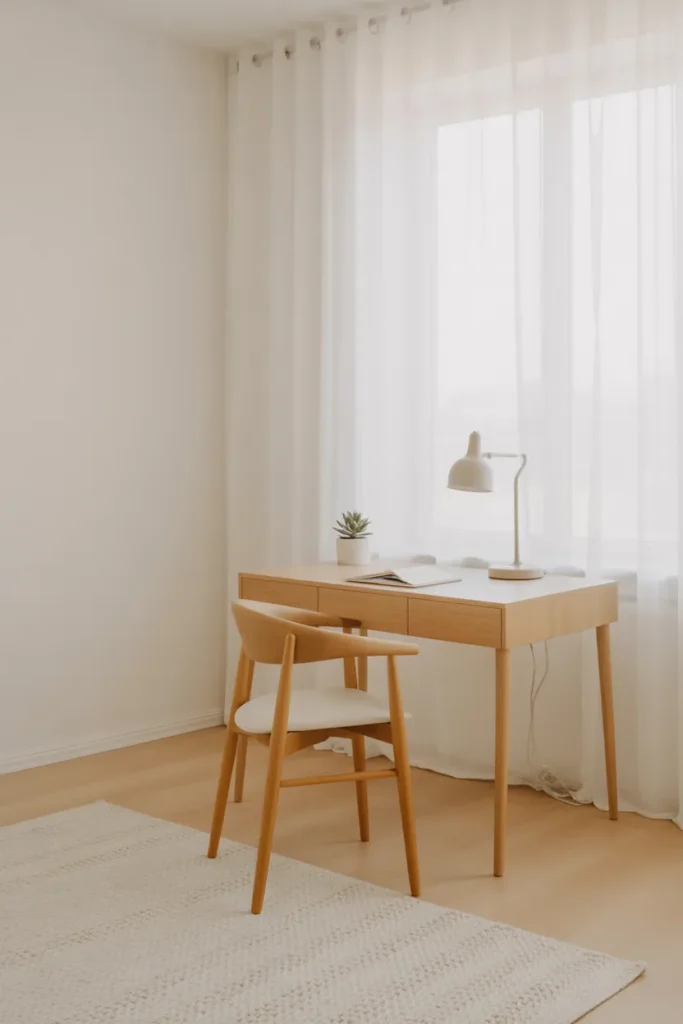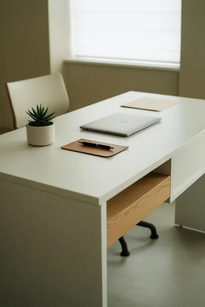 A minimalist desk with only the essentials can feel incredibly freeing. Think clean lines, open surface, and just one or two decorative pieces.