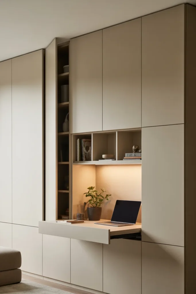 A foldable desk or a cabinet-style office lets you close everything away when you’re done. It’s especially useful in living rooms or shared spaces.