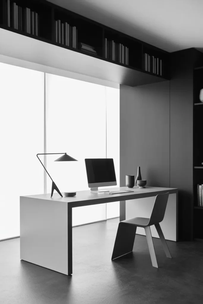 Black, white, and maybe a hint of grey can create a workspace that feels crisp and intentional.