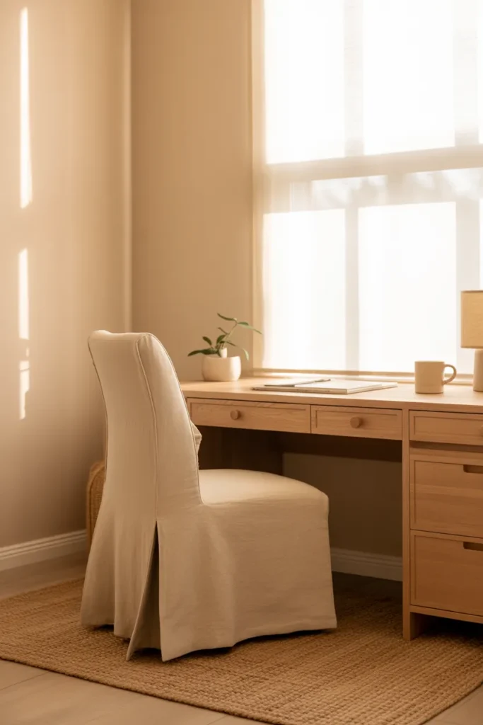 2. Warm Neutral Workspace That Feels Effortlessly Calm