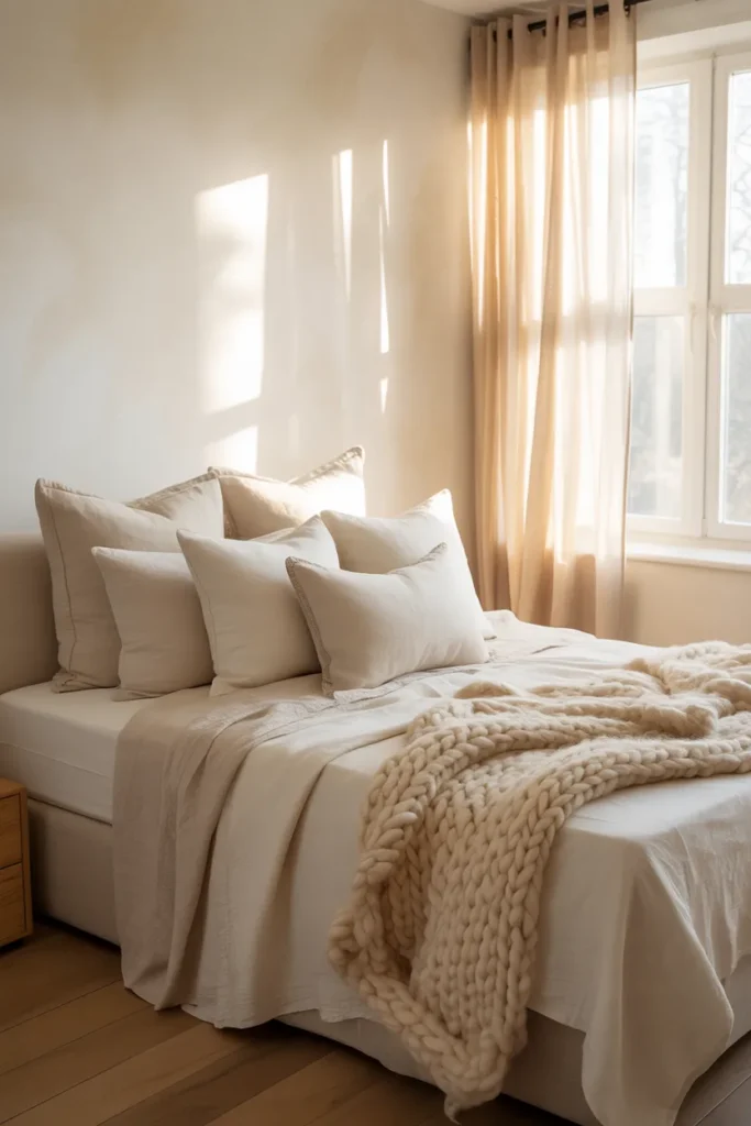 Use this in bedrooms with layered textiles. Think soft bedding, curtains, and rugs that create depth without adding color.