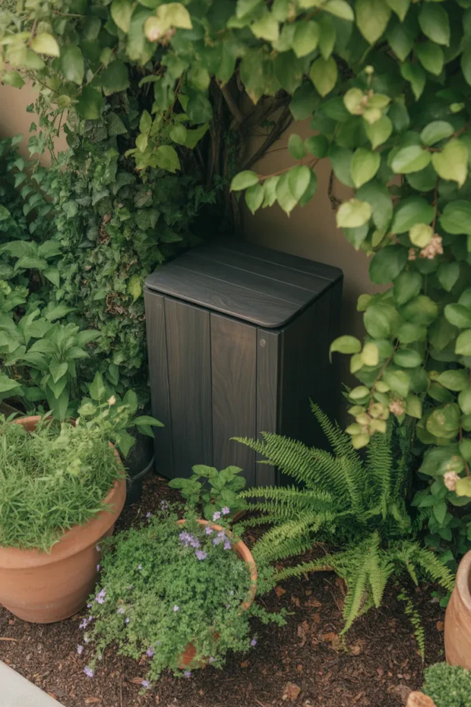 Composting doesn’t have to look messy. A small, enclosed compost bin can blend seamlessly into your nursery.