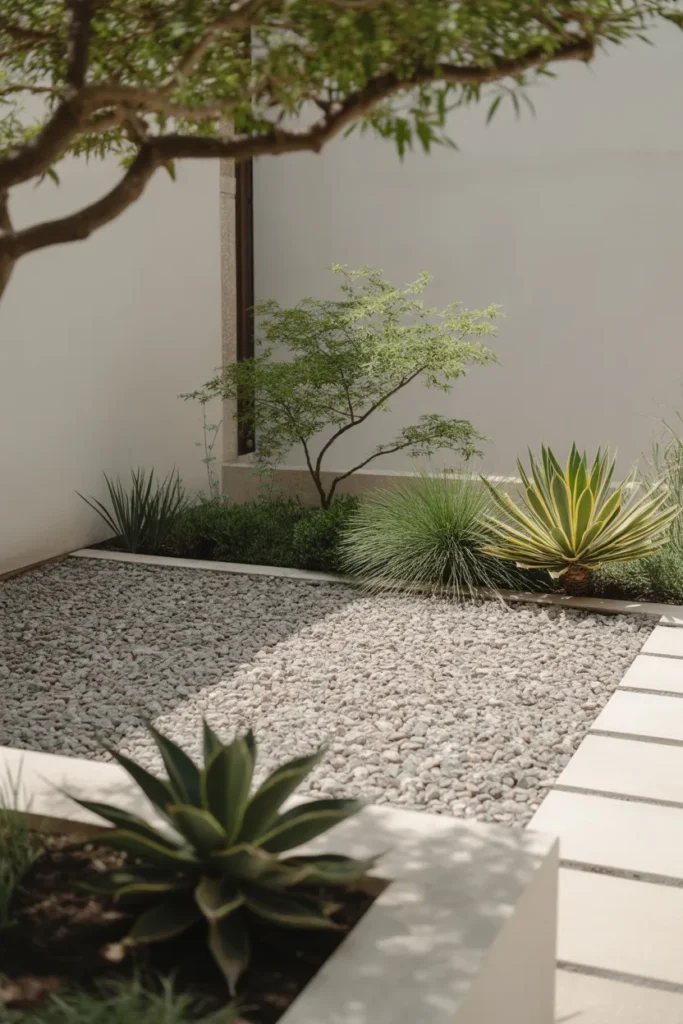 Too many colors can make a small garden feel chaotic. Switching to a neutral palette instantly changes the mood.