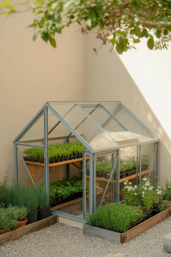 7. Compact Greenhouse Corner That Feels Intentional
