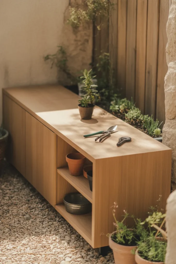 3. Minimalist Potting Bench With Hidden Storage