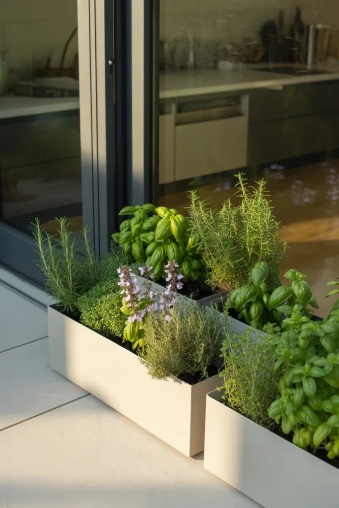 Set up a small herb nursery right outside your door using compact planters or a vertical rack.